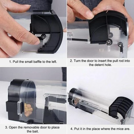 Einfach zu bedienen: Am Ende der Falle können Sie den Deckel abnehmen und den Köder platzieren.Dann platziere es in der Ecke des Raumes oder Hofes in der Nähe des verdächtigen Mausnests.