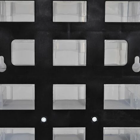 Dieser 41-Fächer Sortimentsschrank mit 40 kleinen Schütten und einer großen Schütte ist die perfekte Wahl für Sie, Ihren Arbeitsplatz zu organisieren. Er eignet sich ideal für die Aufbewahrung von Kleinteilen aller Art, wie kleine Maschinenteile, Zubehör oder sogra DIY Werke. Sie können entweder die große Schütte oder eine kleine wählen, je nach der Maße der Dinge, die Sie darin setzen möchten. Dieser Kasten besteht aus dauerhaftem transparentem Kunststoff, der für die Sichtbarkeit der aufbewahrten Produkte sorgt. Die 2 kleinen Löcher auf der Rückseite des Schranks bieten Ihnen die Möglichkeit, ihn an die Wand oder andere Oberflächen zu montieren.