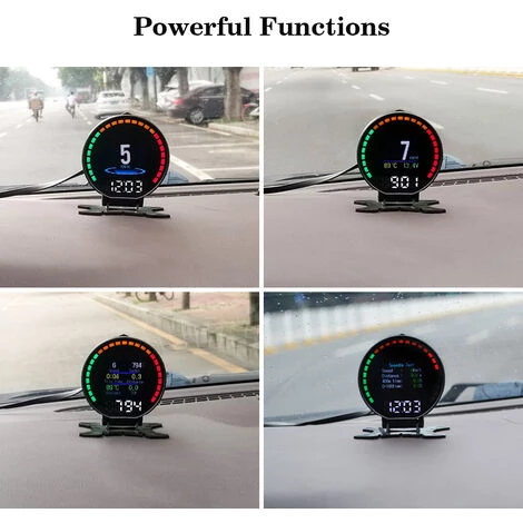 HUD kann Fahrdaten wie Geschwindigkeit, Drehzahl, Wassertemperatur, Spannung usw. auf der Frontscheibe des Autos anzeigen. Die Fahrinformationen konnen vom Fahrer sofort gelesen werden und bleiben mit HUD auf dem Weg in perfektem Zustand.