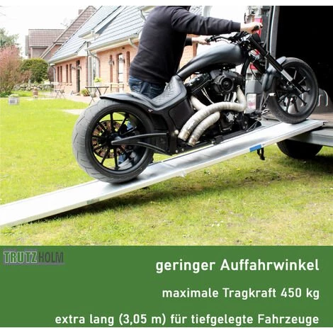 Diese Rampe aus hochwertigen Aluminium und einer Tragkraft von bis zu 450 kg, sorgt für eine lange Lebensdauer und ein optimales Verhältnis von Tragfähigkeit zum Eigengewicht.