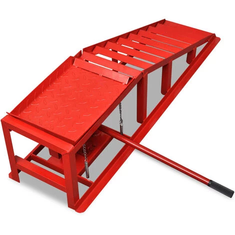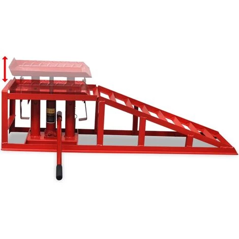 Dieses Paar von 2-Tonnen Auffahrrampen ist ideal, um Kraftfahrzeuge, wie Autos und Lastwagen in Werkstätten und Garagen zu heben. Die Rampen sind dazu bestimmt, einen leichten Zugang zur Unterseite des Fahrzeugs zu ermöglichen und haben eine maximale Hubhöhe von 37,5 cm haben. Die Rampen können mit einem Sicherungsbolzen verriegelt werden, sobald die gewünschte Arbeitshöhe erreicht ist, damit sich Ihr Fahrzeug in einer sehr stabilen, erhöhten Position befindet. Der mitgelieferte Hydraulikwagenheber ist bis zu 2 Tonnen/2000 kg belastbar, so dass das Wechseln der Autozubehörteile und die Durchführung von routinemäßigen Wartungsarbeiten sicherer und effizienter wird. Die breiten Rampen können Fahrzeuge mit großen Reifen aufnehmen. Diese Auto-Auffahrrampen haben eine robuste, langlebige und hochwertige Stahlkonstruktion. Dank der kompakten Bauweise lassen sie sich bequem auf engstem Raum aufbewahren. Die Lieferung beinhaltet 2 hydraulische Auffahrrampen.