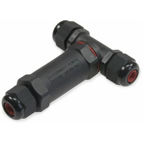 Praktische Dosenmuffe zum sicheren und einfachen Verbinden von Stromführenden Leitungen im Außenbereich mit einem von Querschnitt bis 1,5 mm². Features: – Schutzart:IP68 – Kabel Ø: 8…11mm – Klemme: 3-polig – T-Verbinder (1 Eingang + 2 Ausgänge) – Maße (LxØxB): 104x28x78 mm