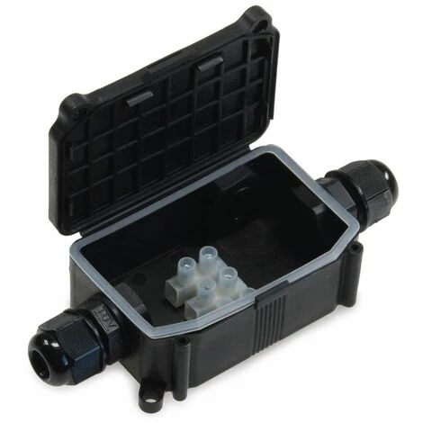 Praktische Verteiler Dose zum sicheren und einfachen Verbinden von Stromführenden Leitungen im Außenbereich mit einem von Querschnitt bis 2,5 mm². Features: – Schutzart:IP66 – Kabel Ø:6 …8mm – Klemme: 3-polig – T-Verbinder (1 Eingang + 2 Ausgänge) – stabiles Kunststoffgehäuse – Bemessungs Querschnitt: 2,5 mm² – inkl. Lüsterklemme und Schrauben – Maße (LxHxB): 125x28x73 mm