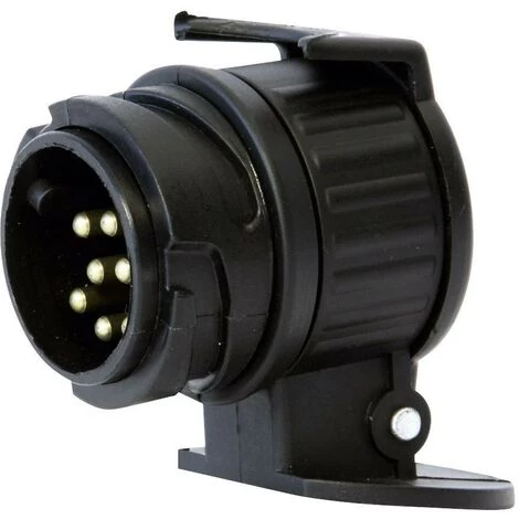 Anschluss (Anhänger): Stecker 7polig · Anschluss (Fahrzeug): Steckdose 13polig · Ausführung (allgemein): Von 13poliger Fahrzeug-Dose auf 7poligen Anhänger-Stecker · Betriebsspannung: 12 V · Material: ABS
