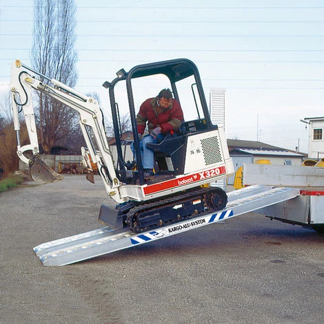 Ideal zur Verladung von mittelschweren Fahrzeugen (z.B. Minibagger, Rasentraktoren) die mit Luftbereifung oder Gummiketten ausgerüstet sind.