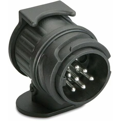 Steckdosen-Adapter zum Anschluss von KFZ-Anhängern mit 7-poligem Stecker (alte Norm) an Fahrzeuge mit 13-poliger Anhänger-Steckdose (neue Norm).