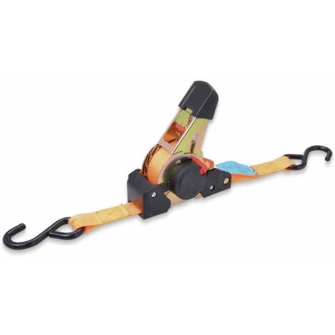 Zum sicheren Transport von Lasten, z.B. Kisten, Kartons, Boote usw. auf dem Trailer oder PKW-Dach. Die Spannkraft beträgt 300 kg und die Gurtlänge liegt bei 3 Meter. Der Spanngurt hat einen automatischen Aufrollmechanismus und ist mit gummierten Haken aus Stahl versehen. Technische Daten: – Zugfestigkeit: 300 kg – Gurtlänge: 3 m – Gurtbreite: 25 mm – TÜV/GS geprüft – Farbe: schwarz – Material Gurt: PES – Material Griff/Haken: Stahl