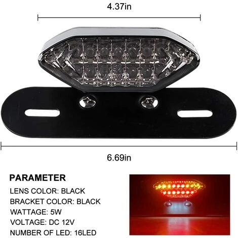 Einfache Installation: Fünfdrahtverbindung, schwarzes Erdungskabel; grüner Draht Fahrlicht; rotes Kabel Bremslicht; Blinker mit weißem Kabel links; Blinker mit gelbem Kabel rechts. Mit einer 6,69 Zoll langen Eisenhalterung ist die Installation fester.