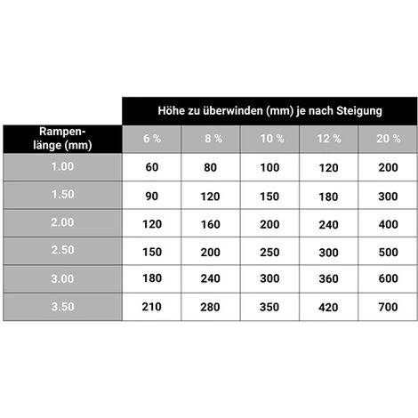– Im ÖFFENTLICHEN BEREICH MAX. 6 %: das entspricht der Norm für das barreriefreie Bauen (DIN 18040-1) und gilt als Maximum für Selbstfahrer und öffentliche Gebäude.
