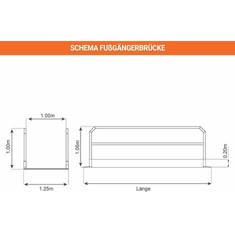 – Eine Auflagefläche von 300mm x Breite der Brücke ist an beiden Enden erforderlich.