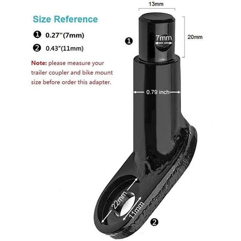 - Fahrradanhänger-Zubehör: Fahrrad-Befestigungsloch ist 11 mm und Anhänger-Befestigungsloch ist 7 mm. Sie müssen vor dem Kauf bestätigen, ob Ihr Anhänger installiert werden kann.