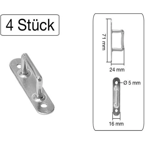 Die Haken dienen der Befestigung von Planen oder Netzen an Anhängern. Die Zurrösen werden mittels der beiden Bohrungen direkt an dem Anhänger befestigt.