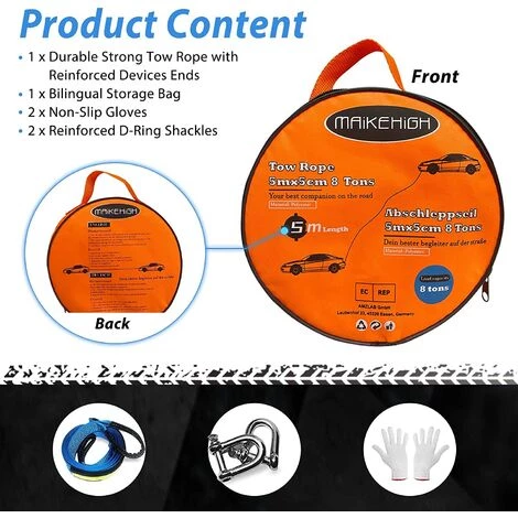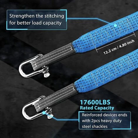 LANGLEBIG STARK – Der Abschleppgurt besteht aus hochwertigem Nylon-Polyester, ist 16,5 Fuß lang, 2 Zoll breit und dickes Doppelgurtband mit einem robusten 2-Zoll-Stahlbügel, der ihn langlebig und sicher während der Arbeit macht.