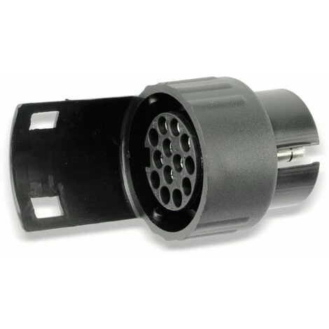 Dieses praktische Adapterstück aus schlagfestem ABS-Kunststoff ermöglicht den Anschluss eines Anhängers mit neuem, 13-poligem Stecker auf ein Fahrzeug mit einer älteren, 7-poligen Steckdose. Features: – 13-polige Kuplung auf 7-poligen Stecker – Geeignet für Fahrzeuge mit 12 Volt – Material: Kunststoff (ABS) – Gewicht: 70 g – Maße (LxØ): 80×47 mm
