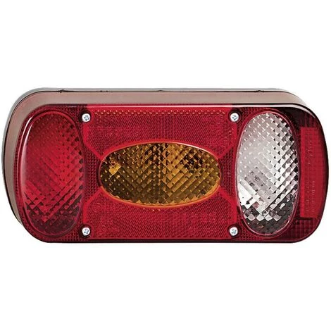 Robuste rechte Multikammer Heckleuchte mit Rückfahrlicht und Kennzeichenbeleuchtung. Leuchte ist für Kleinanhänger und Fahrradträger