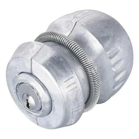 Passend zum Einsatz in alle Kupplungssysteme. Der witterungsbeständige Aluminiumkörper wird mit beiliegendem Sechskantschlüssel in die Kupplung eingespreizt und dann mit einem Schließzylinder verriegelt.
