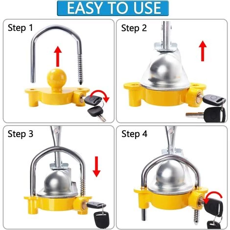 BESTE QUALITÄT AUF DEM MARKT – Trailer Lock besteht aus einer Aluminiumlegierung mit einer gelben Pulverbeschichtung. Hochwertige Materialien bieten Beständigkeit gegen Rost, Korrosion und Witterungseinflüsse.