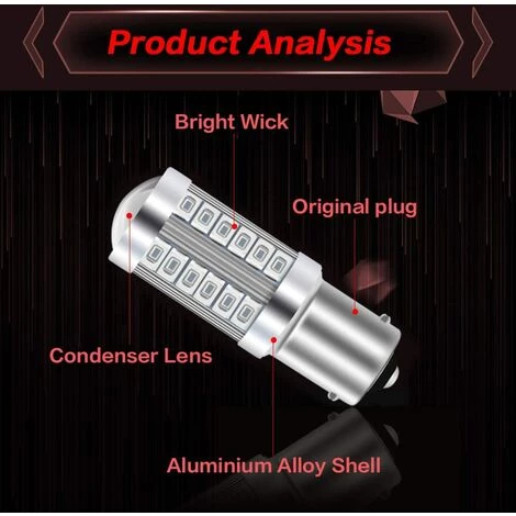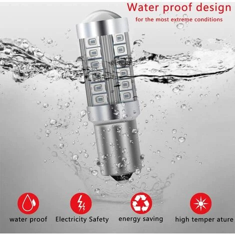 1156 BA15S LED-Lampen: Mit superhellen 5730 SMD (33 LEDs) Die energieeffiziente Lampe hat eine Betriebsspannung von 12 V, heller als herkömmliche Glühlampen. Lange Lebensdauer und hält etwa 50000 Stunden.< /p>