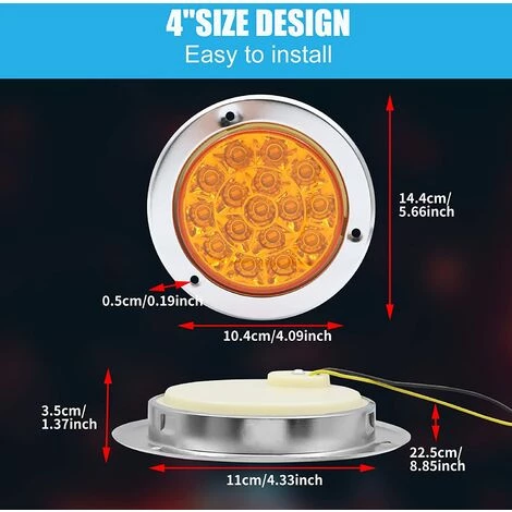 【4 Zoll rundes LKW-Rücklicht】Außendurchmesser: 5,6 Zoll; Innendurchmesser: 4 Zoll. Integrierte Installation, der äußere LED-Ring verfügt über zwei Modi (Fern- und Abblendlicht) und fungiert als hinteres Bremslicht; Die LED zentral transparent/weiß dient als Rückfahr- und Rückfahrlicht.