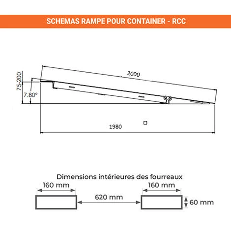 – Maximale Abmessungen des Einfahrtaschen für Staplergabeln : 160x60mm, Abstand 620mm.