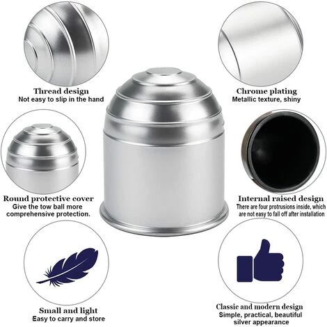 Klassisch modernes Design. Die Farbe der Kugelkopfabdeckung ist silber, sehr schlicht und schön, passend zum klassischen und modernen Design der PKW-Anhängerkupplung, ideal für Kugelkupplungen.