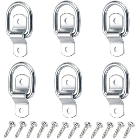 6 PCS Zurrringe Edelstahl Zurrringe mit Montagehalterung und Schrauben 1/4″ D-Ringe für Anhänger Vans Trucks Road Horsebox Seile