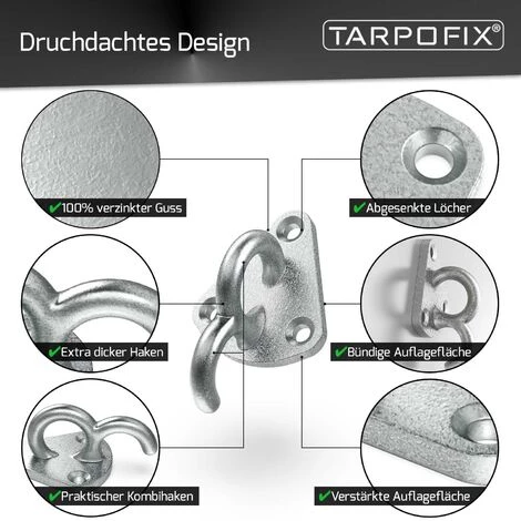 ✔ ROBUST – Die Tarpofix Dreiloch Planenhaken aus robustem Guss weisen eine besonders starke Strapazierfähigkeit auf & halten auch einer besonders starken Verzurrung problemlos stand!