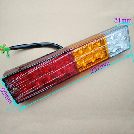 ABS-Material, wasserdicht, robust. Einfach zu installieren. Schwarzes Kabel zum Minuspol, rot zum Bremslicht, grün zum Rücklicht, gelb zum Blinker, weiß zum Rückwärtsgang.