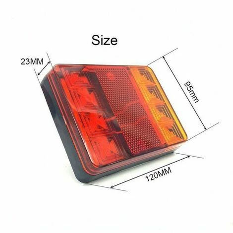 Spezifikation:* Material: ABS* Farbe: wie die Bilder zeigen* LED-Lichtfarbe: rot und gelb* Menge: 1 Paar (links und rechts)* LED pro Licht: 8 hochwertige helle LEDs* Volt: DC 12V* Abmessung: 120 x 95 x 22 mm (L x B x H)* Kabellänge: ca. 20 cm* Paket: 140 x 100 x 78 mm (L x B x H)* Produktgewicht: ca. 120 g pro Licht* Paketgewicht: ca. 265 gEigenschaften:* Geringer Energieverbrauch.* Langlebig, schlagfest.* Einfache Installation, brillant, langlebig.* Voll wasserdicht, stoßfest.Passend für:Anhänger, Lastwagen, Lastwagen, Lastwagen, Boote, Wohnwagen usw.
