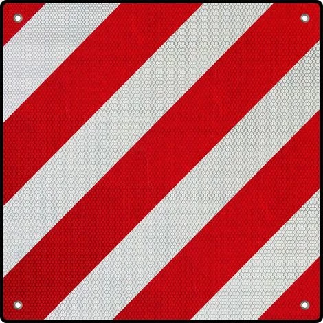 Die Warntafel Ausführung 500x500mm ist in Italien und Spanien für Ladungen, die nach hinten herausragen oder überstehen, eine Pflichtausrüstung und muss gut sichtbar montiert werden.