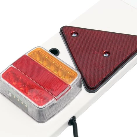| Anwendung / Information / Ausstattung | Anhänger LED Lichtleiste mit mehreren Leuchten Für Anhänger und Fahrradträger geeignet Verschiedene Funktionen: Blinklicht, Bremslicht, Rücklicht & Kennzeichenbeleuchtung Dreieckreflektoren für eine bessere Sichtbarkeit Energiesparende LED-Leuchtmittel |