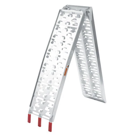 Die Auffahrrampe ermöglicht das schnelle und sichere Verladen von Fahrzeugen oder Baumaschinen. Die stabile Auffahrschiene ist aus leichtem und hochwertig verarbeiteten Aluminium gefertigt und bietet durch die breite Auffahrfläche mit einer starken Profilierung überall Halt wo es feucht oder rutschig ist.