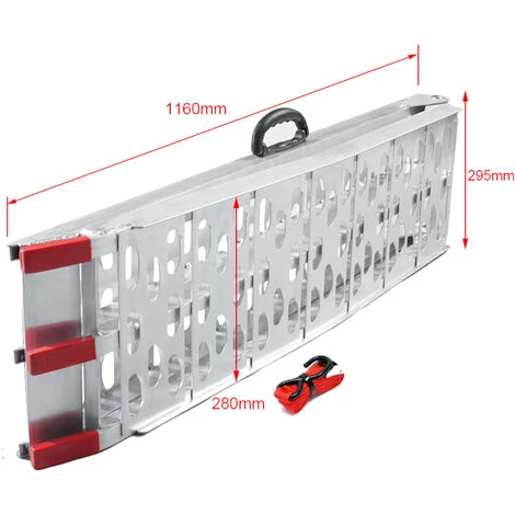 Auffahrrampen helfen Fahrzeuge oder Baumaschinen schnell und sicher zu verladen. Die stabilen Auffahrschienen sind aus leichtem und hochwertig verarbeiteten Aluminium gefertigt und bieten durch die breiten Auffahrflächen mit einer starken Profilierung überall Halt wo es feucht oder rutschig ist. Das Auf- und Abfahren oder verladen wird enorm erleichtert. Quads, Motorräder, Mopeds und ähnliches lassen sich schnell und ohne großen Aufwand in einen Anhänger oder Transporter verladen. Treppen oder andere Hindernissen lassen sich einfach überwinden. Werden die ATV-Rampen nicht benötigt, dann lassen sie sich durch die gerade Bauform und die Klappfunktion auf kleinsten Raum verstauen.