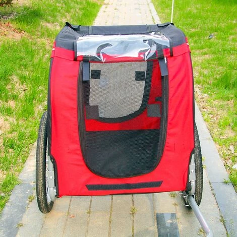 Hunde Fahrradanhänger mit Fliegengitter & Regenschutz, schwarz rot