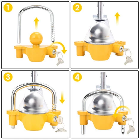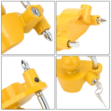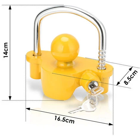 Beschreibung:Der beste Schutz gegen Diebstahl!Sichern Sie Ihren Anhänger, Wohnwagen oder Anhänger schnell und einfach gegen unbefugten Diebstahl mit diesem massiven Anhängerschloss.Geeignet für alle gängigen Kupplungen mit 50 mm Einlass, wird der Kugelkopf eingekoppelt und die Kupplung wird dann durch die Stahlhalterung sicher verriegelt. Produktvorteile:Optimaler Schutz: Sichern Sie Ihren Anhänger, Wohnwagen oder Trailer gegen unbefugtes Entwenden einfach und schnell mit diesem massiven Anhängerschloss .Universell: Passend für alle gängigen Kupplungen mit 50 mm Einlass wird der Kugelkopf eingekoppelt und die Kupplung anschließend durch den Stahlbügel sicher verriegelt.Massive Konstruktion: Das Schloss wird aus massivem Stahl gefertigt und bietet somit optimalen Schutz gegen Diebstahl.Hochwertiges Kreuzschloss: Das hochsichere Kreuzschloss lässt sich nur mit den 2 Schlüsseln öffnen,einfache und schnelle Anbringung.Nutzung für Anhänger Wohnwagen:Das Kupplungsschloss ist für Anhänger, Wohnwagen oder Anhänger mit 50 mm Kugelkupplungen geeignet. Es ist direkt am Anhänger montiert.Praktisch im Kofferraum verstauba: inkl. 2 Schlüsseln, platzsparend im Kofferaum zu verstauen. Technische Daten:Farbe:Silber + gelbMaterial: Eisen+StahlGröße: 15,5 * 8 * 15,5cmfür 50 mm Zugkugelkupplungen Lieferung:1x Anhänger Schloss2x Schlüssel1x Bedienungsanleitung Hinweis:1.Die Schlüssel zwischen verschiedenen Schlössern sind nicht universell.2.Es muss sichergestellt werden, dass der rotierende Teil des Schlosskörpers Schmiermittel enthält, um den Verschleiß des Schlosskörpers zu verringern und die Lebensdauer zu erhöhen.