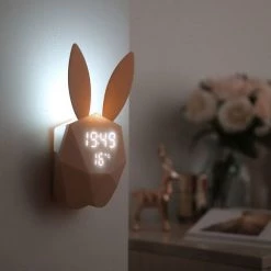 MONLY Kaninchen-Modell Wecker Intelligente Sprachsteuerung USB-Aufladung Kleines Rosa Licht